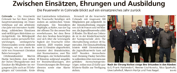 Jahreshauptversammlung der Feuerwehr Colnrade