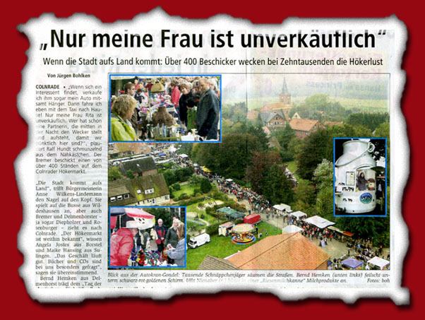 Hökermarkt der Gemeinde Colnrade. Das Geld soll den fleißigen Helfern zugute kommen, die sich um die Pflege der drei Dorfplätze in Colnrade, Holtorf und Beckstedt bemühen.