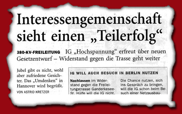 "Interessengemeinschaft Vorsicht-Hochspannung sieht einen Teilerfolg "