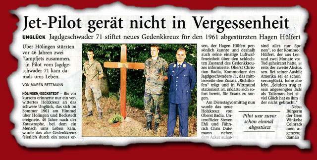 Jagdgeschwader 71 stiftet neues Gedenkkreuz für den 1961 abgestürzten Hagen Hülfert.