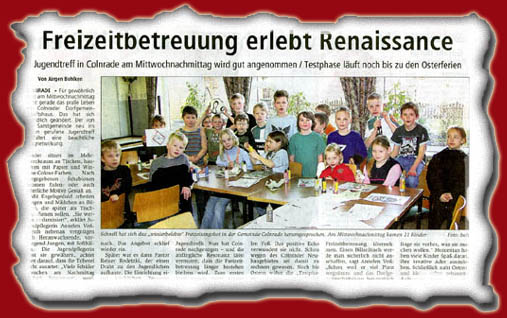 Seit Kurzem gibt es in Colnrade für Kinder und Jugendliche wieder eine Freizeitbetreuung. Der "Jugendtreff " findet jeden Mittwoch von 15.30 bis 17.30 Uhr im Dorfgemeinschaftshaus statt.
