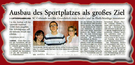 SC Colnrade will den Sportplatz ausbauen und in eine neue Flutlichtanlage investieren. Man ist auch auf der Suche nach einem geeigneten Vereinsheim. Auf der Jahreshauptversammlung kam es wiedermal zu vielen Ehrungen.