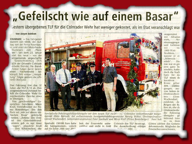 "Freiwillige Feuerwehr Colnrade bekommt neues Tanklöschfahrzeug"