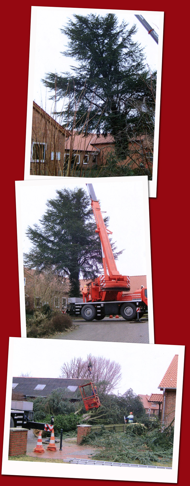 Im März 2012 war für diesen Baum beim Dorfgemeinschaftshaus Colnrade die Zeit zu Ende. Was viele Jahre benötigte, um diese imposante Größe zu erreichen, war mit Kran, Steiger und Motorsäge in nur wenigen Minuten Vergangenheit. Herfried Harms aus Colnrade reagierte blitzschnell und hielt den kurzen Augenblick bildlich fest.