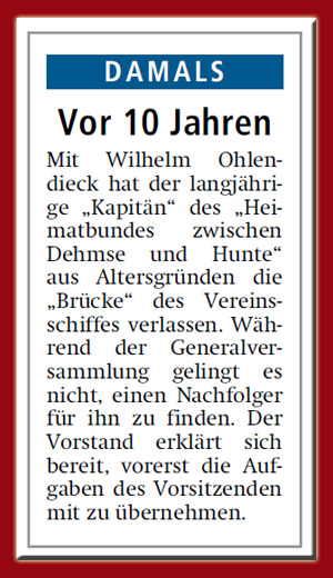 Organisiert wurde die Veranstaltung vom Heimatbund zwischen Dehmse und Hunte. 40 Interessierte lauschten den plattdeutschen Geschichten und Gedichten. Untermalt wurde die Veranstaltung durch Musikbeiträge von Verena und Christoph Kammann.