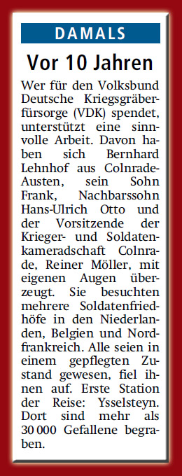 Am 21.09. fand dort ein Dorfgottesdienst statt. Für den Posaunenchor Colnrade war dieser Gottesdienst ein besonderer, denn vor 10 Jahren begleiteten Hilke Harms und Johann-Smid-Hüneke den Gottesdienst mit ihren Blasinstrumenten. Und das war dann die Geburtsstunde des Colnrader Posaunenchores.