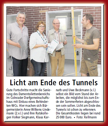 - Erneuerung der Damentoilette im DGH liegt im Zeitplan
