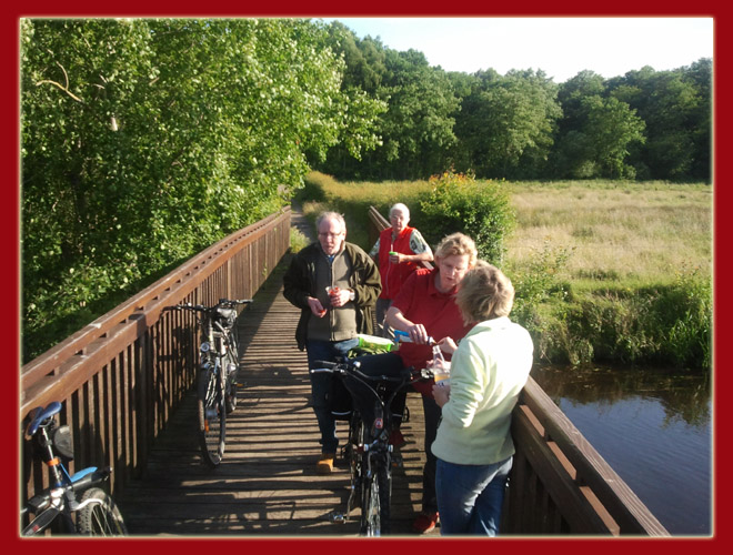 Ab sofort unternimmt der Heimatbund zwischen Dehmse und Hunte bis September wieder jeden 2. Sonnabend im Monat eine Radtour. Am 14. Juni fand die erste Tour in diesem Jahr statt. Sie führte an der Aussichtsplattform in Garmhausen vorbei zur Lohmühle und weiter über das Pestruper Gräberfeld zur Katenbäke. Über Reckum ging es dann zurück zum Ausgangsort.