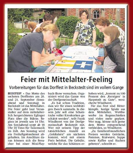 Alle zwei Jahre feiern die Beckstedter ihr Dorffest. Dieses Jahr fand es erstmalig auf dem Eglinger Platz statt.