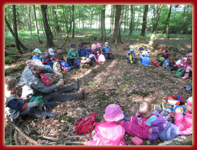 "Am 19.05.2016 haben wir einen schönen Waldtag erlebt. Der Förster Thomas Mikutta hat uns etwas über kleine Bäume und Farben des Waldes erzählt.