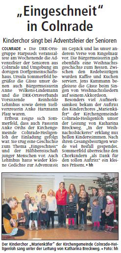 Adventsfeier der DRK-Ortsgruppe für Senioren