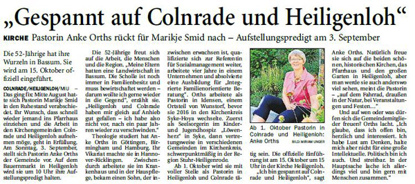 Pastorin Anke Orths rückt für Marikje Smid nach