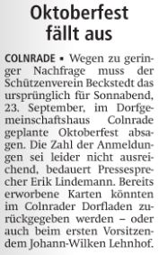 Schützenverein Beckstedt - Absage des Oktoberfestes