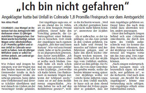 "Freispruch nach Unfall aus Mangel an Beweisen"