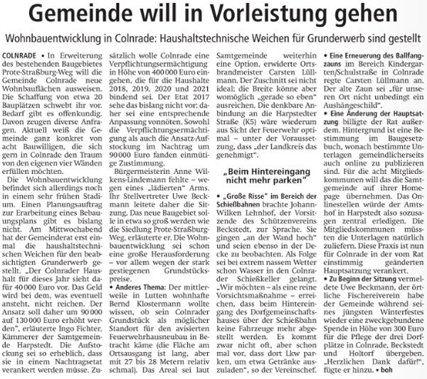 Wohnbauentwicklung - Baugebiet Colnrade