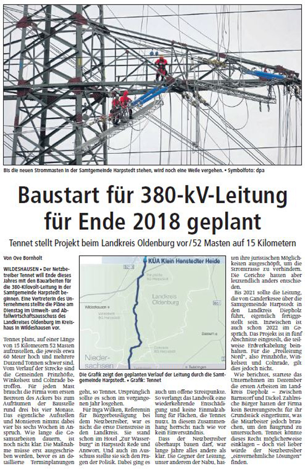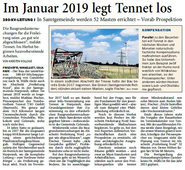 380-KV-Leitung - Im Januar 2019 legt Tennet los