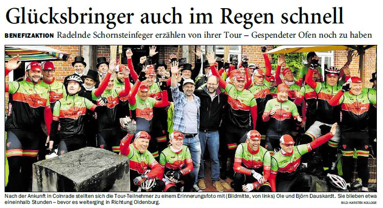 Radelnde Schornsteinfeger zu Besuch im Ofenhaus Colnrade