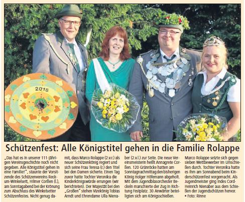 Schützenfest - Alle Königstitel gehen in die Familie Rolappe