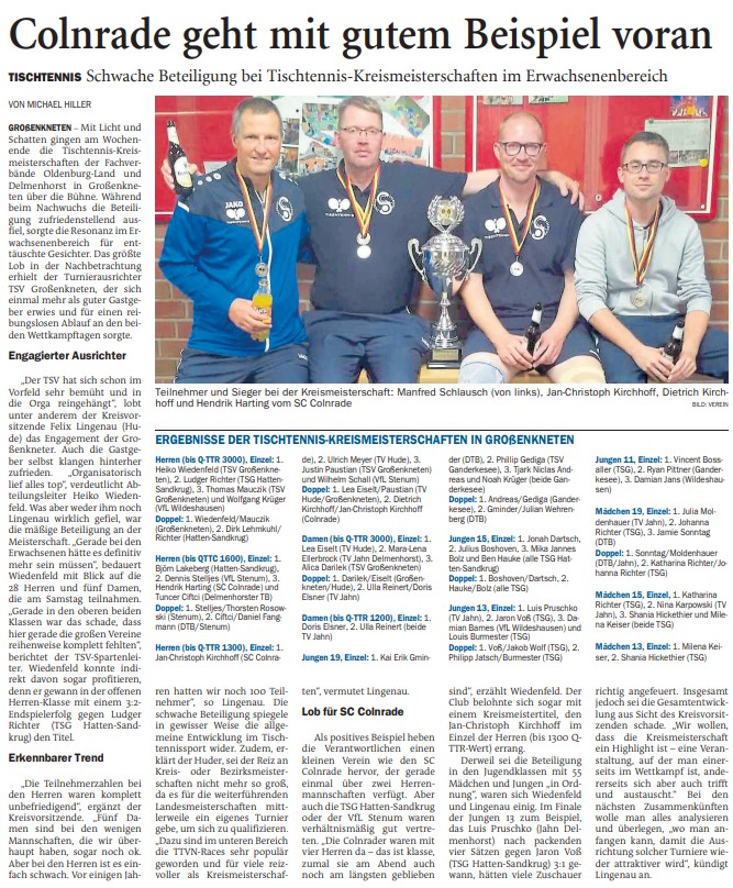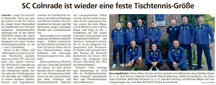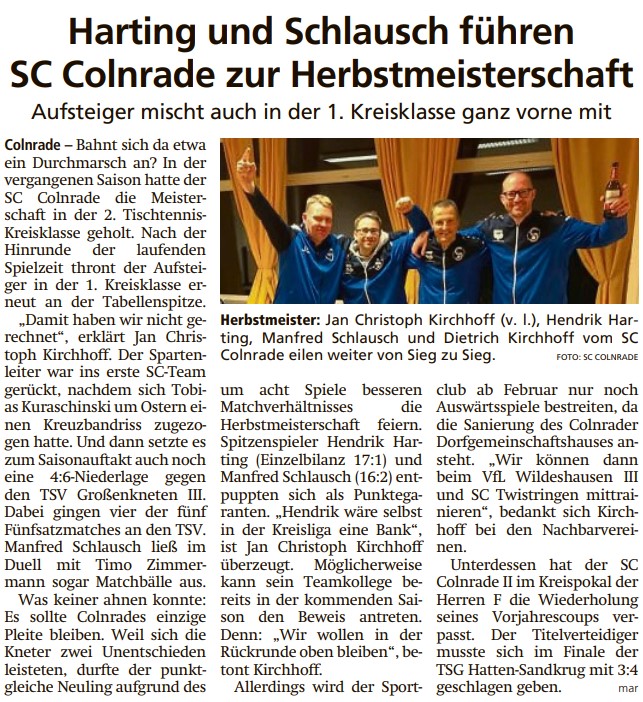 Tischtennissparte des SC Colnrade ist Herbstmeister!
