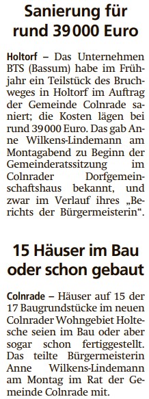 Gemeinderatssitzung in Colnrade - Haushalt verabschiedet