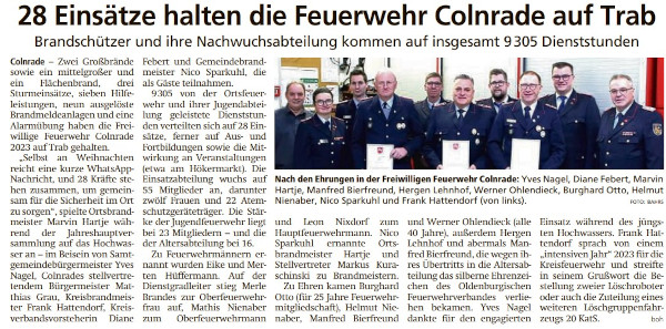 Jahreshauptversammlung der Feuerwehr Colnrade