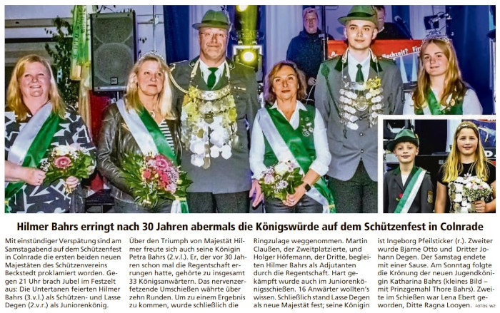 SV Beckstedt - Schützenfest - Hilmer Bahrs nach 30 Jahren erneut Schützenkönig