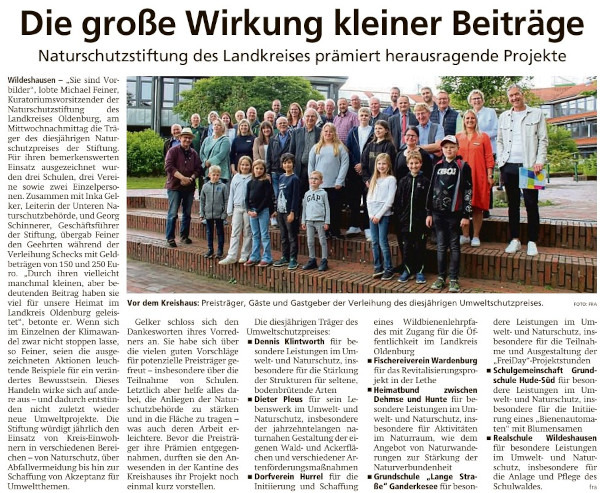 Umweltschutzpreis 2024 - Heimatbund erhält 150 Euro