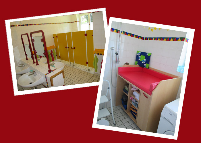 Freundliche Räume der Einrichtung bieten eine familiäre Atmosphäre. Im Spielzimmer kann man auf zwei Ebenen intensives Spiel erleben. Ein zusätzlicher Bewegungsraum im Obergeschoss lädt zu Bewegungsangeboten wie z. B. Bällchenbad, Hängematte usw. ein. Im Mauseloch (Kreativraum) können Kinder mit unterschiedlichen Materialien malen, basteln, kneten, kreativ sein. Das Bad und die Küche sind kindgerecht gestaltet und laden die Kinder zum selbstständigen Tun und Handeln ein.