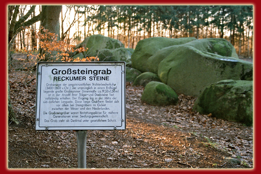 Wissenschaftlich bewiesen ist jedoch, dass es ursprünglich mehrere Großsteingräber waren, die am östlichen Hunteufer lagen, davon vier in der Reckumer Gegend. Heute sind nur noch die beiden Reckumer Großsteingräber erhalten; ein drittes Grab soll 1882 noch ca. 1 km nordwestlich vorhanden gewesen sein. Entstanden sind sie 3400 bis 2800 vor Chr.